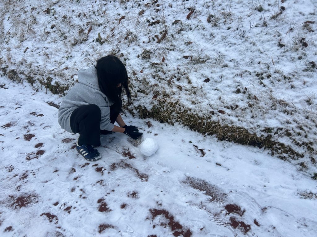 子供たちは珍しい雪に大喜びでしたが、